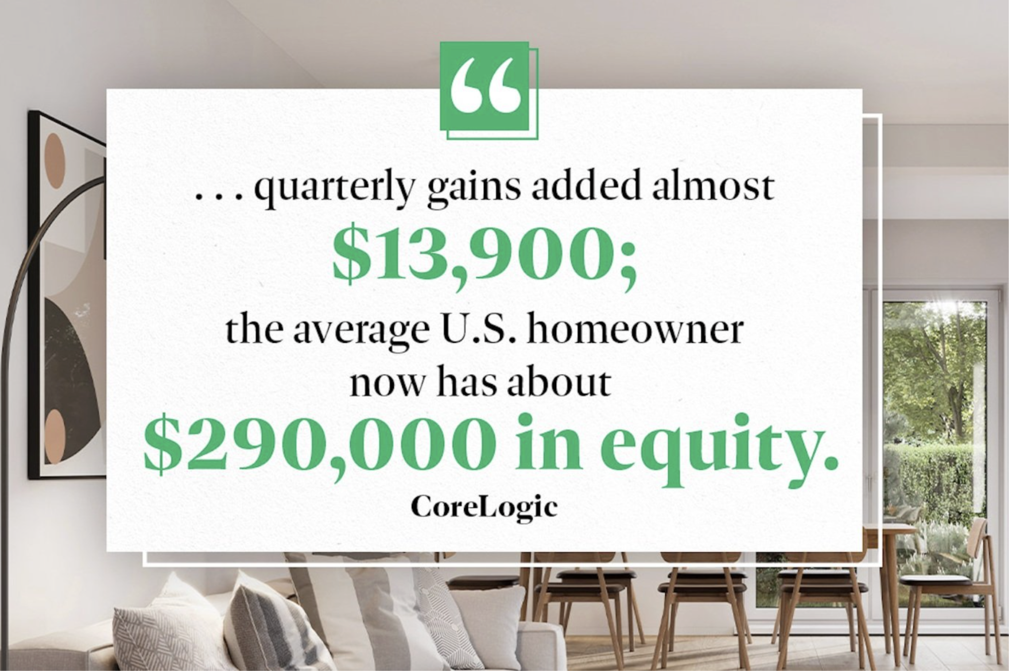 A recent study by CoreLogic showed that the average US homeowner is sitting on about $290,000 in equity. Why? Home prices have soared recently, supercharging your equity growth. And even though the market has been cooling down nationwide, there are still more buyers than houses for sale. That means your home's value is still climbing.