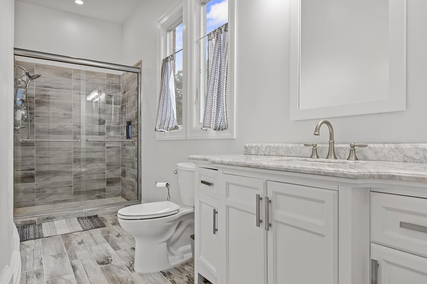 Outdoor amenities include a saltwater pool, custom fire pit, and a 2,000 sqft recreation barn with a batting cage/driving range, and basketball court. A detached guest apartment, whole-house generator, and RV parking pad add convenience. Backing to protected wetlands, Castle Shamong delivers unmatched privacy, functionality, and resort-style living in a breathtaking natural setting.